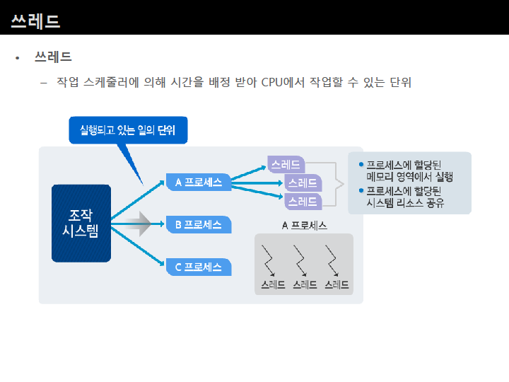 – 자바가 실행되는 기반인 자바가상머신(Java virtual machine, 이하 JVM) 자체가 하나의 프로세스임