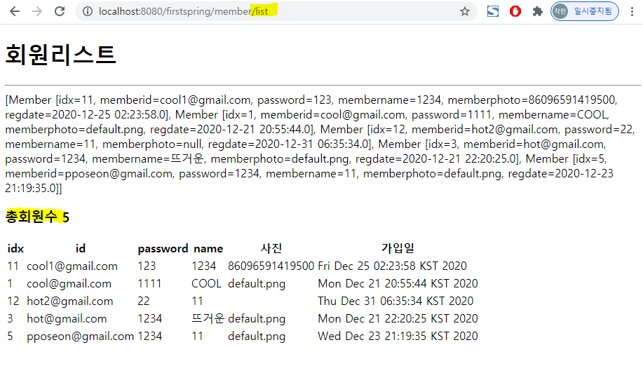 컨트롤러 > 회원가입 성공시 리스트출력으로