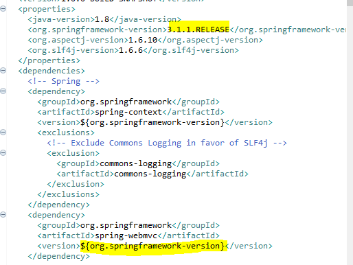 스프링 버전이 바뀔때마다 자동으로 바뀌게 하려면 이런식으로 값을 넣어주면 된다.