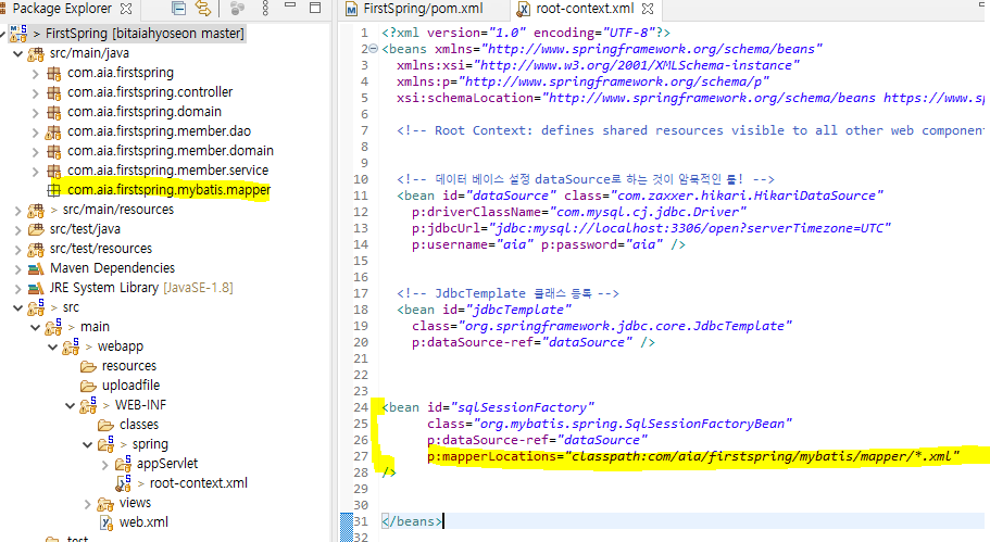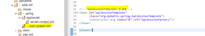 sqlsessionfactory bean등록하기 (id=SqlSessionFactory와 SqlSessionTemplate부분)