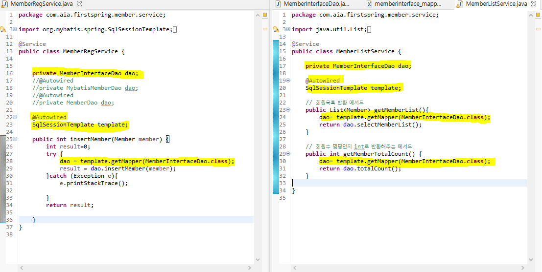 마찬가지로 서비스에서 Dao를 바꿔줘야하는 것 잊지말아야하고