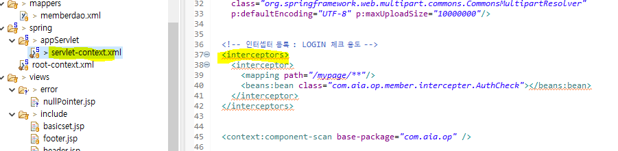 xmlns:mvc가아니라 생략되어 있으므로 <interceptors>로 등록했다.