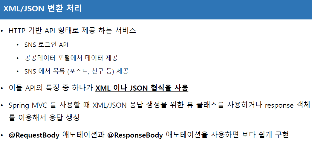 - @ResponseBody : 자바 객체를 JSON 이나 XML 형식의 문자열로 변환