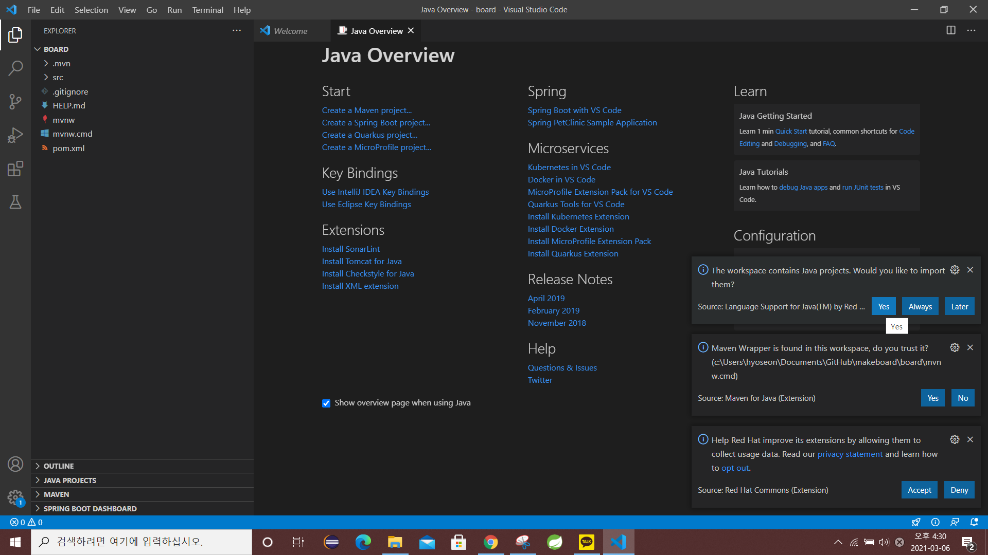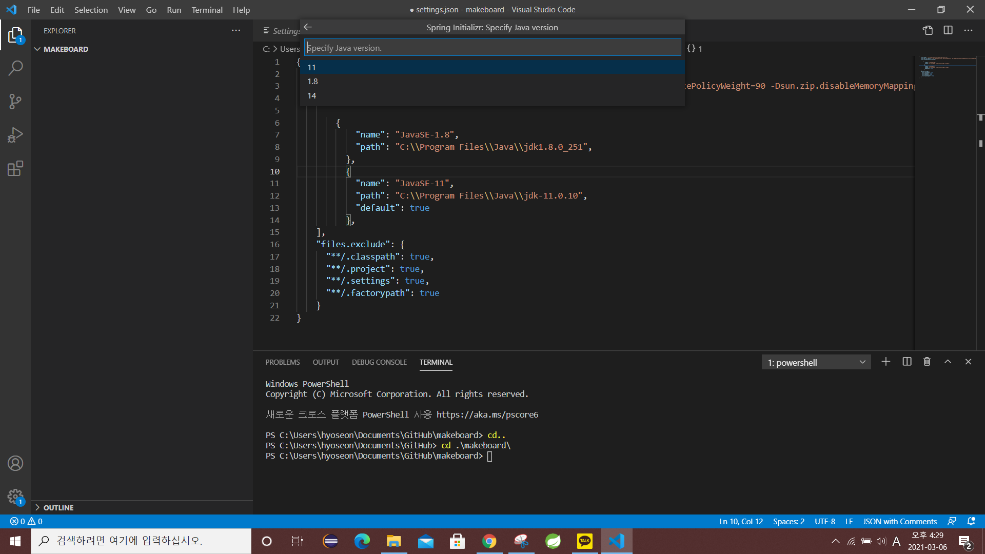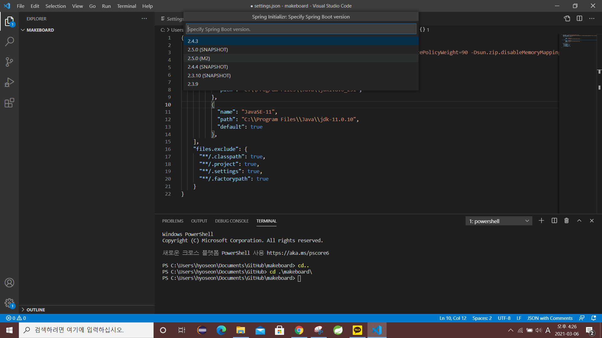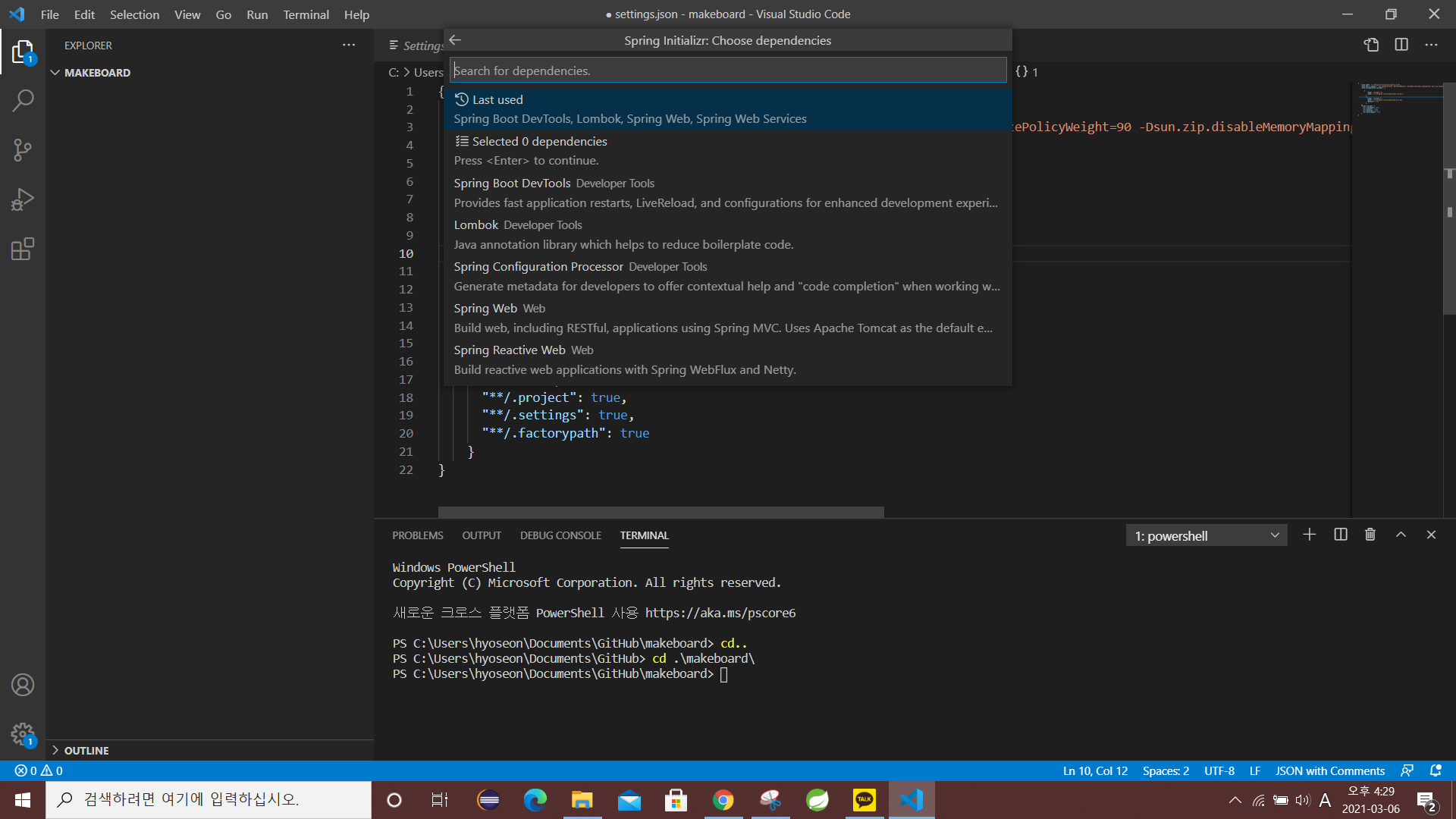 컨트롤 쉬프트 P 누르고 스프링 버전이랑 등등 선택해준다.