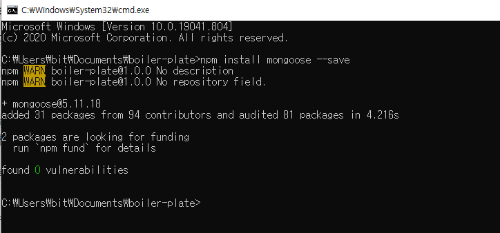 C:\Users\bit\Documents\boiler-plate>git commit -m "처음 저장소 올림"